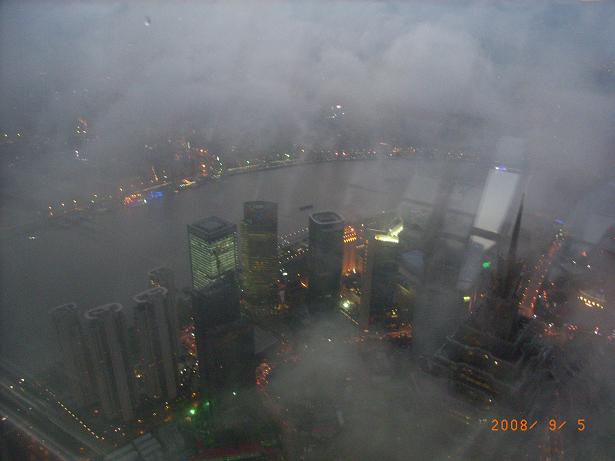 観光、といえば、到着した日の夜に、話題の上海タワーに上りましたが、すごい雲の中に入っていて、かろうじて眼下の景色が見えました。